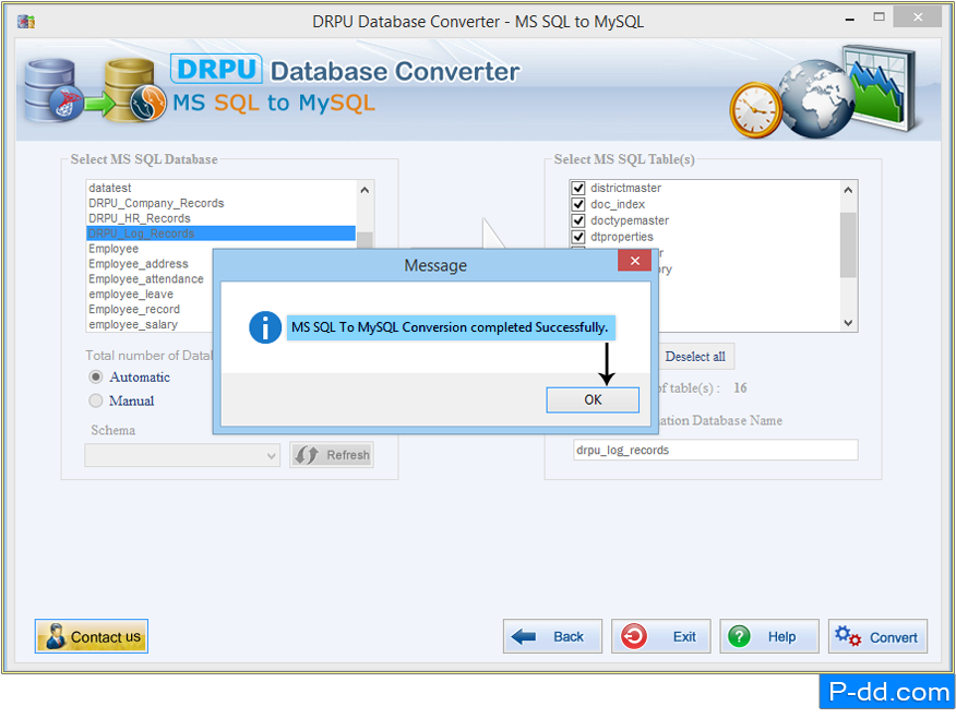 - ✅ Convert individual database table or more than one table depending on user’s selection.